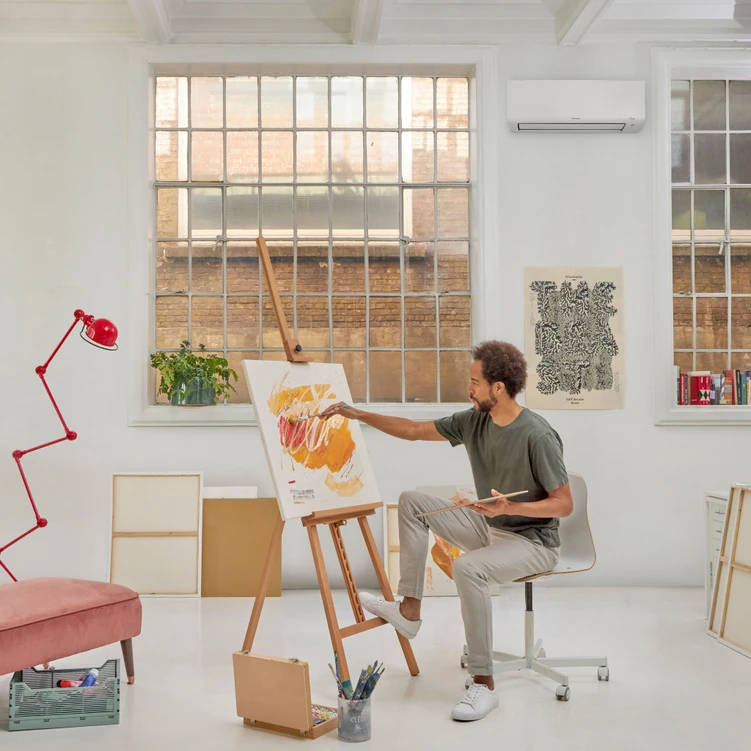 Lucht-luchtwarmtepompen brengen de energie van de buitenlucht naar je woning, ongeacht de buitentemperatuur. De buitenunit onttrekt warmte aan de buitenlucht. Met behulp van de koelmiddelcyclus geeft de unit de energie bij een hogere of lagere temperatuur af aan je kamer via de binnenunit, afhankelijk van je verwarmings- of koelbehoeften.